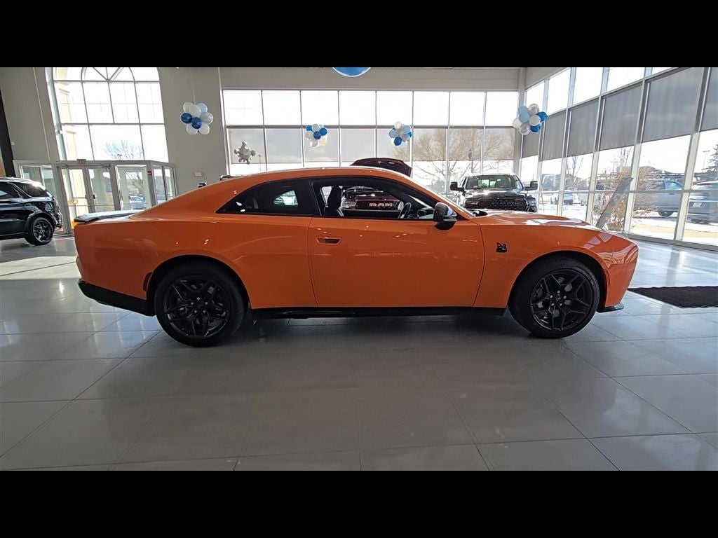 Header Orange Clearcoat 2026 Dodge Charger R/T Scat Pack AWD 8-Speed Automatic HO AWD, Black Artificial Leather, 10 Speakers, 2-Way Manual Adjust Front Head Restraints, 2-Way Power Driver Lumbar Adjust, 4-Wheel Disc Brakes, 4G LTE Wi-Fi Hot Spot, 8-Way Power Driver Seat Adjust, ABS brakes, Active Noise Control System, Air Conditioning, Alloy wheels, AM/FM radio: SiriusXM w/360L, Apple CarPlay/Android Auto, Auto-dimming Rear-View mirror, Automatic temperature control, Black Seats, Blacktop Package, Brake assist, Bumpers: body-color, Compass, Connectivity - US/Canada, Dark Exterior Badging, Delay-off headlights, Disassociated Touchscreen Display, Driver door bin, Driver vanity mirror, Dual front impact airbags, Dual front side impact airbags, Dual Rear Exhaust with Black Tips, Electronic Stability Control, Emergency communication system: Dodge Connect, Four wheel independent suspension, Front anti-roll bar, Front Bucket Seats, Front Center Armrest, Front dual zone A/C, Front License Plate Bracket, Front reading lights, Fully automatic headlights, Garage door transmitter, Heated door mirrors, Heated Exterior Mirrors, Heated Front Seats, Heated front seats, Heated steering wheel, Illuminated entry, Integrated Center Stack Radio, Knee airbag, Leather Shift Knob, Leatherette/Cloth Performance Seats, Low Back Bucket Seats, Low tire pressure warning, Manufacturer's Statement of Origin, Occupant sensing airbag, Outside temperature display, Overhead airbag, Overhead console, Panic alarm, ParkView Rear Back-Up Camera, Passenger door bin, Passenger vanity mirror, Power Adjust Mirrors, Power door mirrors, Power driver seat, Power steering, Power windows, Quick Order Package 22P Scat Pack, Radio data system, Radio: Uconnect 5 with 12.3 Display, Rear anti-roll bar, Rear reading lights, Rear seat center armrest, Rear window defroster, Remote keyless entry, Security system, Speed control, Split folding rear seat, Spoiler, Sport steering wheel, Steering wheel mounted audio controls, Tachometer, Telescoping steering wheel, Tilt steering wheel, Traction control, Trip computer, Variably intermittent wipers, Wheels: 20 x 10 Aluminum, Wheels: 20 x 10 Dark Finish Aluminum, Wireless Apple CarPlay, Wireless Google Android Auto, AWD, Black Artificial Leather.