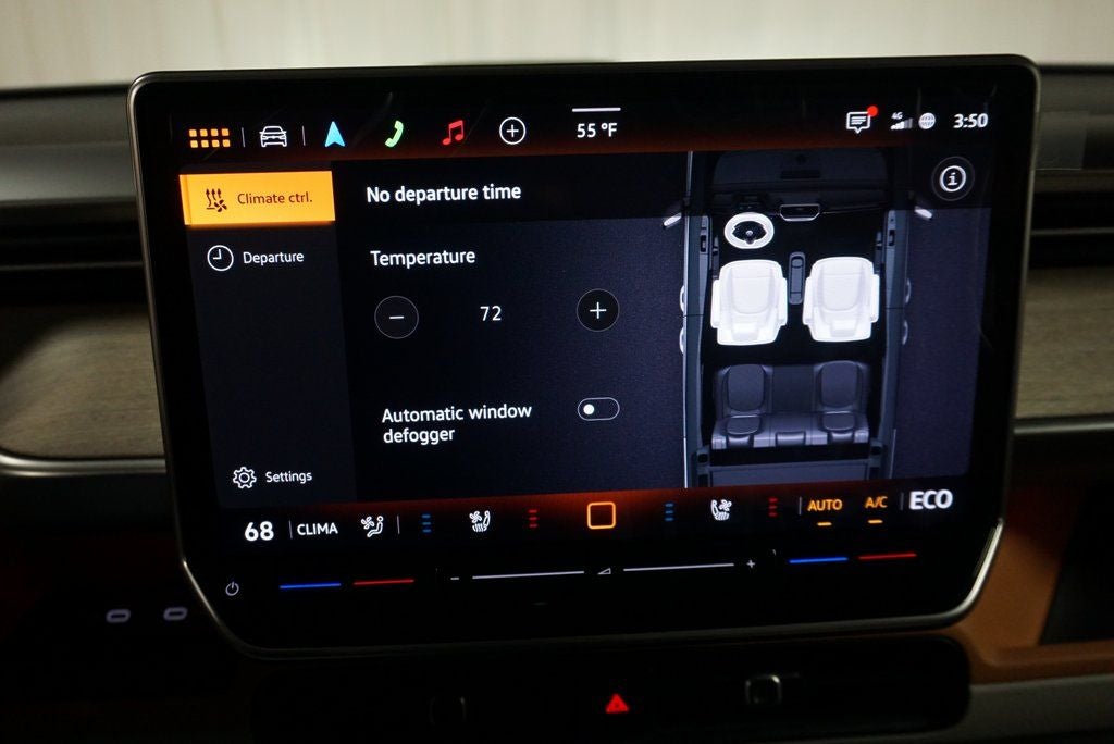 - Radio: Discover Pro Max w/Touchscreen Navigation -inc: 12.9 inch touchscreen multi-function center display w/backlit sliders, FM/HD Radio, WMA/MP3/FLAC media player w/voice control, Harman Kardon premium sound system w/13 speakers, subwoofer and amplifier, Bluetooth® connectivity (for compatible devices), SiriusXM w/360L (w/3-month free trial subscription; must accept SiriusXM terms), App-Connect smartphone integration (w/Apple CarPlay, Android Auto and MirrorLink) via USB, wireless App-Connect smartphone integration (for compatible devices) w/multi-phone pairing capability, capability for in-vehicle 4G LTE enabled Wi-Fi (cellular data plan required; includes limited trial), capability for VW Car-Net services (capabilities for certain services vary; requires enrollment or subscription) and Qi wireless inductive charger (for compatible mobile phones and accessories) in front row