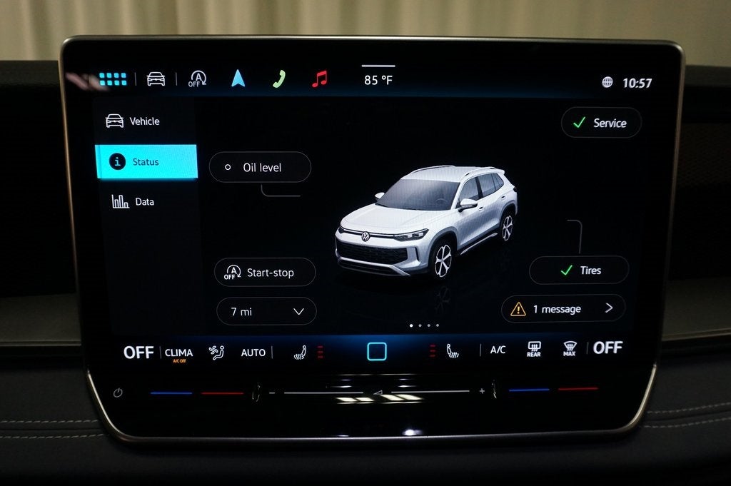 - Radio: MIB4 Composition Media Touchscreen AM/FM -inc: WMA/MP3/FLAC player w/USB, 12.9" touchscreen multi-function center display w/backlit sliders, voice control, 6 speakers + center speaker (7 speakers total) sound system, capability for in-vehicle 4G LTE enabled Wi-Fi (cellular data plan required; includes limited trial), capability for VW Car-Net services (capabilities for services vary; requires enrollment or subscription), Bluetooth® connectivity (for compatible devices), SiriusXM w/360L (w/3-month free trial subscription; 360L services require acceptance of Car-Net terms), App-Connect smartphone integration (w/Apple CarPlay, Android Auto and MirrorLink) via USB, wireless App-Connect smartphone integration (for compatible devices) w/multi-phone pairing capability, 45W fast charging (for compatible mobile phones and accessories) via USB in both rows and Qi wireless inductive charger, cooled, up to 15W (for compatible mobile phones and accessories)