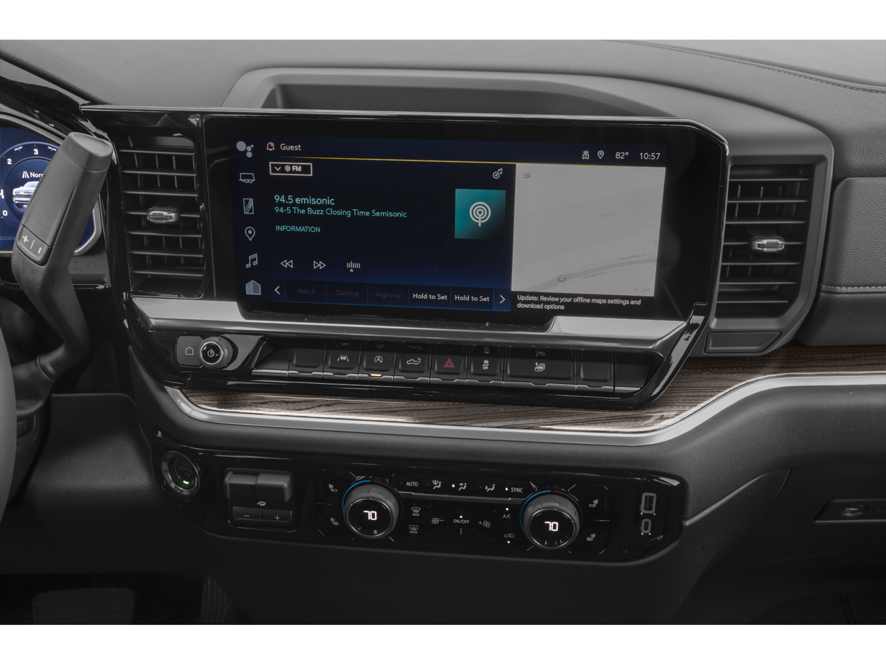 - Convenience Package includes (CJ2) dual-zone automatic climate control, (A2X) 10-way power driver seat including power lumbar, (KA1) heated driver and passenger seats, (N57) wrapped steering wheel, (KI3) heated steering wheel, (KI4) 120-volt power outlet, (KC9) 120-volt bed-mounted power outlet, (UBI) 2 charge-only USB ports for second row, (C49) rear-window defogger, (AVJ) Keyless Open and Start, (BTV) Remote Start, (UTJ) content theft alarm, (N37) Steering column, manual tilt and telescoping and (UF2) LED Cargo Area Lighting (Upgradeable to (A50) bucket seats and includes (D07) center console.)
