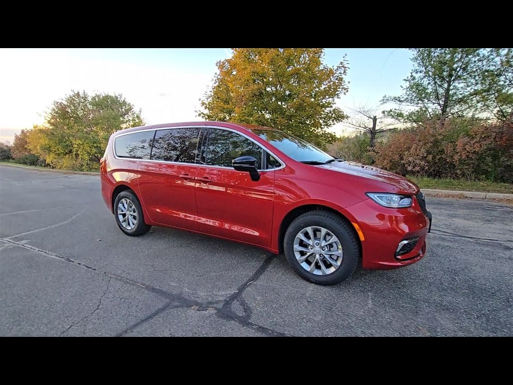 Red Hot Pearlcoat 2026 Chrysler Pacifica Select AWD 9-Speed 948TE Automatic 3.6L V6 24V VVT 360 Surround View Camera System, Quick Order Package 27L, Safety Sphere, 10.1 Touchscreen Display, 18 x 7.5 Painted Aluminum Wheels, 3.73 Axle Ratio, 3rd row seats: split-bench, 4-Wheel Disc Brakes, 4G LTE Wi-Fi Hot Spot, 6 Speakers, ABS brakes, Air Conditioning, Alloy wheels, AM/FM radio: SiriusXM, Apple CarPlay, Apple CarPlay/Android Auto, Auto-dimming Rear-View mirror, Automatic temperature control, AWD Suspension, Black Seats, Brake assist, Bumpers: body-color, Caprice Leatherette Bucket Seats, Compass, Connectivity - US/Canada, Delay-off headlights, Disassociated Touchscreen Display, Driver door bin, Driver vanity mirror, Driver's Seat Mounted Armrest, Dual front impact airbags, Dual front side impact airbags, Electronic Stability Control, Emergency communication system: Chrysler Connect, For Details, Visit DriveUconnect.com, Four wheel independent suspension, Front anti-roll bar, Front Bucket Seats, Front dual zone A/C, Front fog lights, Front reading lights, Fully automatic headlights, Garage door transmitter, Google Android Auto, GPS Antenna Input, Heated door mirrors, Heated front seats, Heated steering wheel, Illuminated entry, Integrated Active Noise Cancellation, Integrated Center Stack Radio, Knee airbag, Low tire pressure warning, Memory seat, Occupant sensing airbag, Outside temperature display, Overhead airbag, Overhead console, Panic alarm, ParkView Rear Back-Up Camera, Passenger door bin, Passenger seat mounted armrest, Passenger vanity mirror, Power door mirrors, Power driver seat, Power Liftgate, Power steering, Power windows, Radio data system, Rain sensing wipers, Rear air conditioning, Rear reading lights, Rear window defroster, Rear window wiper, Reclining 3rd row seat, Remote keyless entry, Security system, Speed control, Split folding rear seat, Spoiler, Steering wheel mounted audio controls, Tachometer, Telescoping steering wheel, Tilt steering wheel, Traction control, Trip computer, Turn signal indicator mirrors, USB Host Flip, Variably intermittent wipers, Voltmeter, 360 Surround View Camera System, Quick Order Package 27L, Safety Sphere.