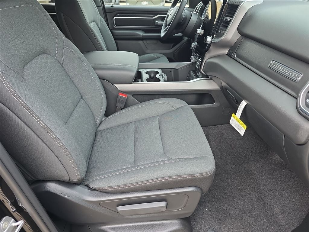 Diamond Black Crystal Pearlcoat 2026 Ram 1500 Big Horn/Lone Star 4WD 8-Speed Automatic 3.0L I6 115V Auxiliary Power Outlet, 115V Auxiliary Rear Power Outlet, 12 Touchscreen Display, 2nd Row in Floor Storage Bins, 3 Rear Seat Head Restraints, 4 Way Front Headrests, 4-Wheel Disc Brakes, 400W Inverter, 48V Belt Starter Generator, 4G LTE Wi-Fi Hot Spot, 6 Speakers, 9 Amplified Speakers with Subwoofer, ABS brakes, Accent Color Tailgate Handle, Air Conditioning, Air Conditioning ATC with Dual Zone Control, Alloy wheels, AM/FM radio, Apple CarPlay, Apple CarPlay/Android Auto, Auto High-beam Headlights, Auto Power-Folding Mirrors, Auto-Dimming Exterior Driver Mirror, Auto-Dimming Rear-View Mirror, Big Horn Level 2 Equipment Group, Black Exterior Mirrors, Black Interior Accents, Black Premium Power Mirrors, Black Trailer Tow Power Mirrors, Body Color Door Handles, Body Color Fender Flares, Body Color Front Bumper, Body Color Rear Bumper with Step Pads, Body Color Tailgate Handle, Brake assist, Bucket Seats, Bumpers: chrome, Center Console Parts Module, Cloth Bucket Seats, Cluster 12 TFT Color Display, Cluster 7.0 TFT Color Display, Compass, Configurable Drive Mode, Connected Travel and Traffic Services, Connectivity - US/Canada, Convex Wide-Angle Exterior Mirror Insert, Delay-off headlights, Deluxe Cloth Bucket Seats, Disassociated Touchscreen Display, Dome Dual LED Reading Lamp, Driver door bin, Dual front impact airbags, Dual front side impact airbags, Dual-Pane Panoramic Sunroof, Electronic Stability Control, Exterior Mirrors Courtesy Lamps, Exterior Mirrors with Heating Element, Exterior Mirrors with Supplemental Signals, Front anti-roll bar, Front Bucket Seats, Front Center Armrest w/Storage, Front fog lights, Front License Plate Bracket, Front reading lights, Front Seat Back Map Pockets, Front wheel independent suspension, Full Length Floor Console, Fully automatic headlights, Global Telematics Box Module, Glove Box Lamp, Google Android Auto, GPS Antenna Input, GPS Navigation, Grille Surround 1 Body Color Texture 1 Black, HD Radio, Heated door mirrors, Heated Front Seats, Heated Steering Wheel, Illuminated entry, Integrated Center Stack Radio, Integrated Voice Command with Bluetooth®, Leather Wrapped Steering Wheel, LED Dome Lamp with on/Off Switch, LED Footwell Lighting, Low tire pressure warning, Manual Adjust 4-Way Driver Seat, Manual Adjust 4-Way Front Passenger Seat, Manual Folding Exterior Mirrors, Manual Telescoping Mirrors, Manufacturer's Statement of Origin, Media Hub with 2 Charge Only USBs, Mirror Clearance/Running Lights, MOPAR Front and Rear Rubber Floor Mats, Occupant sensing airbag, Outside temperature display, Overhead airbag, Overhead console, Overhead LED Lamps, Panic alarm, ParkView Rear Back-Up Camera, Passenger door bin, Passenger vanity mirror, Power 2-Way Driver Lumbar Adjust, Power Adjust 8-Way Driver Seat, Power Adjustable Pedals, Power door mirrors, Power steering, Power windows, Power-Adjustable Convex Aux Mirrors, Premium Overhead Console, Quick Order Package 21Z Big Horn, Radio data system, Radio: Uconnect 5 Navigation with 12.0 Display, Radio: Uconnect 5 W with 8.4 Display, RAM Grille Badge - Chrome, Rear 60/40 Folding Seat, Rear anti-roll bar, Rear Center Armrest, Rear Power Sliding Window, Rear step bumper, Rear Wheelhouse Liners, Rear Window Defroster, Remote keyless entry, Remote Tailgate Release, Security Alarm, SiriusXM Radio Service, SiriusXM with 360L, Speed control, Sport Appearance Package, Steering Wheel Mounted Audio Controls, Sun Visors with Illuminated Vanity Mirrors, Supplier Part Tracking (J-1), Tachometer, Telescoping steering wheel, Tilt steering wheel, Traction control, Trailer Brake Control, Trailer Reverse Steering Control, Trailer Tire Pressure Monitoring System, Trailer Tow Group, Trailer Tow Mirrors, Trip computer, Universal Garag Price includes: $1000 - 2026 Midwest BC Regional Retail Bonus Cash. Exp. 04/30/2026 $3500 - 2026 National Retail Bonus Cash . Exp. 04/30/2026