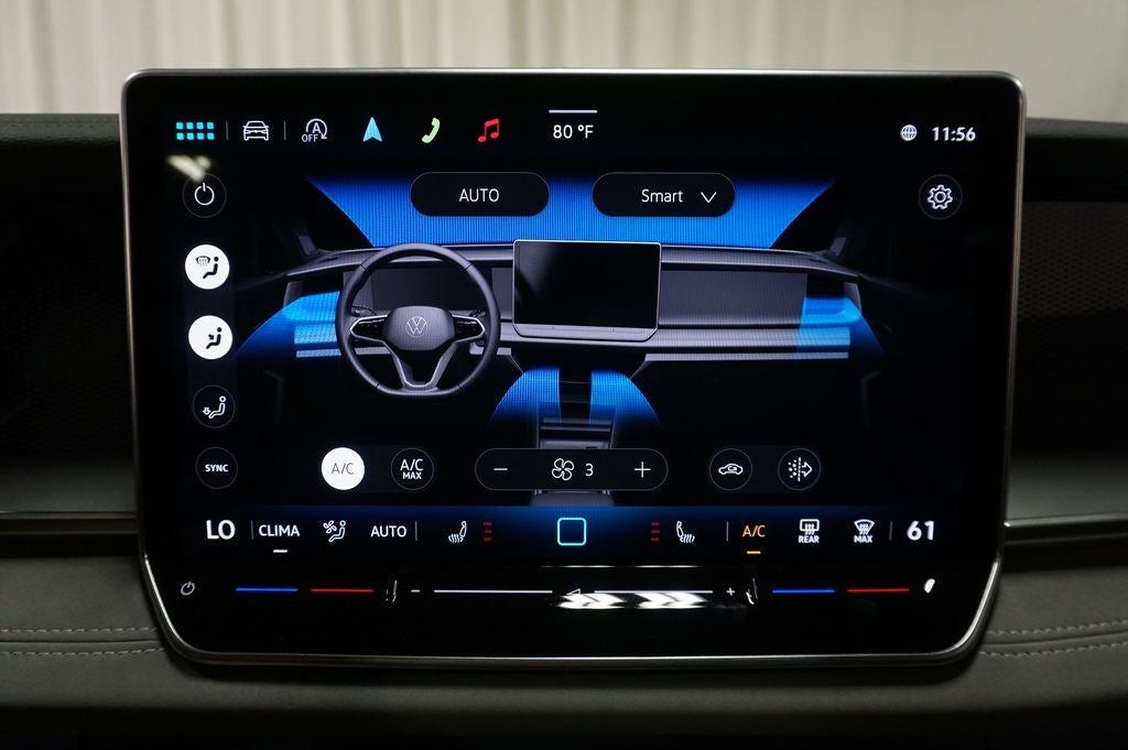 - MIB4 Composition Media Touchscreen w/AM/FM Radio -inc: WMA/MP3/FLAC player w/USB, 12.9" touchscreen multi-function center display w/backlit sliders, voice control, 6 speakers + center speaker (7 speakers total) sound system, capability for in-vehicle 4G LTE enabled Wi-Fi (cellular data plan required; includes limited trial), capability for connected vehicle services (capabilities for services vary; requires enrollment or subscription), Bluetooth® connectivity (for compatible devices), SiriusXM w/360L (w/3-month free trial subscription; 360L services require acceptance of Car-Net terms), App-Connect smartphone integration (w/Apple CarPlay, Android Auto and MirrorLink) via USB, wireless App-Connect smartphone integration (for compatible devices) w/multi-phone pairing capability, 45W fast charging (for compatible mobile phones and accessories) via USB in both rows and Qi wireless inductive charger, cooled, up to 15W (for compatible mobile phones and accessories) All connected vehicle services are subject to terms and limitations. Some services require a paid subscription. See dealer or vw.com/connected for important details.