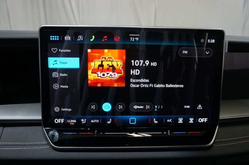 - MIB4 Composition Media Touchscreen w/AM/FM Radio -inc: WMA/MP3/FLAC player w/USB, 12.9" touchscreen multi-function center display w/backlit sliders, voice control, 6 speakers + center speaker (7 speakers total) sound system, capability for in-vehicle 4G LTE enabled Wi-Fi (cellular data plan required; includes limited trial), capability for connected vehicle services (capabilities for services vary; requires enrollment or subscription), Bluetooth® connectivity (for compatible devices), SiriusXM w/360L (w/3-month free trial subscription; 360L services require acceptance of Car-Net terms), App-Connect smartphone integration (w/Apple CarPlay, Android Auto and MirrorLink) via USB, wireless App-Connect smartphone integration (for compatible devices) w/multi-phone pairing capability, 45W fast charging (for compatible mobile phones and accessories) via USB in both rows and Qi wireless inductive charger, cooled, up to 15W (for compatible mobile phones and accessories) All connected vehicle services are subject to terms and limitations. Some services require a paid subscription. See dealer or vw.com/connected for important details.