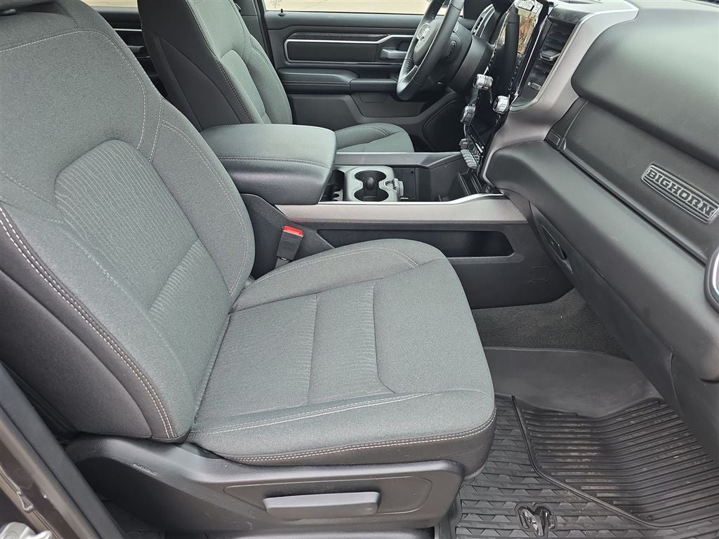 Granite Crystal Metallic Clearcoat 2024 Ram 1500 Big Horn/Lone Star 4WD 8-Speed Automatic HEMI 5.7L V8 Multi Displacement VVT eTorque 115V Auxiliary Power Outlet, 2nd Row In Floor Storage Bins, 3 Rear Seat Head Restraints, 3.21 Rear Axle Ratio, 4 Way Front Headrests, 4-Wheel Disc Brakes, 400W Inverter, 48V Belt Starter Generator, 4G LTE Wi-Fi Hot Spot, 6 Speakers, 9 Amplified Speakers w/Subwoofer, ABS brakes, Accent Color Door Handles, Accent Color Premium Power Mirrors, Active Noise Control System, Air Conditioning, Air Conditioning ATC w/Dual Zone Control, All R1 High Radios, All Radio Equipped Vehicles, Alloy wheels, AM/FM radio, Anti-Spin Differential Rear Axle, Apple CarPlay, Auto-Dimming Exterior Driver Mirror, Auto-Dimming Rear-View Mirror, Bed Utility Group, Big Horn Badge, Big Horn Level B Equipment Group, Black Exterior Truck Badging, Black Headlamp Bezels, Black Interior Accents, Black Painted Exterior Mirrors Caps, Black Premium Power Mirrors, Body Color Front Bumper, Body Color Rear Bumper w/Step Pads, Brake assist, Bucket Seats, Bumpers: chrome, Class IV Receiver Hitch, Cloth Bench Seat, Cluster 7.0 TFT Color Display, Compass, Connected Travel & Traffic Services, Connectivity - US/Canada, Convex Wide-Angle Exterior Mirror Insert, Delay-off headlights, Deluxe Cloth Bucket Seats, Driver door bin, Dual Exhaust w/Black Tips, Dual front impact airbags, Dual front side impact airbags, Dual Rear Exhaust w/Bright Tips, Electronic Stability Control, Emergency communication system: RAM Connect, Exterior Mirrors Courtesy Lamps, Exterior Mirrors w/Heating Element, Exterior Mirrors w/Supplemental Signals, For Details, Visit DriveUconnect.com, For More Info, Call 800-643-2112, Front anti-roll bar, Front Center Armrest w/Storage, Front Fog Lamps, Front License Plate Bracket, Front reading lights, Front Seat Back Map Pockets, Front wheel independent suspension, Full Length Floor Console, Fully automatic headlights, Global Telematics Box Module (TBM), Glove Box Lamp, Google Android Auto, GPS Navigation, Grille Surround 1 Black Texture 2 Black, HD Radio, Heated door mirrors, Heated Front Seats, Heated Steering Wheel, Heavy-Duty Engine Cooling, HEMI Badge, Illuminated entry, Integrated Voice Command w/Bluetooth®, Leather steering wheel, LED Footwell Lighting, Low tire pressure warning, Manual Adjust 4-Way Front Passenger Seat, Manufacturer's Statement of Origin, Media Hub w/2 Charge Only USBs, MOPAR 4 Adjustable Cargo Tie-Down Hooks, MOPAR Deployable Bed Step, MOPAR Front & Rear Rubber Floor Mats, MOPAR Spray In Bedliner, Night Edition, Occupant sensing airbag, Outside temperature display, Overhead airbag, Overhead console, Panic alarm, ParkSense Front/Rear Park Assist w/Stop, ParkView Rear Back-Up Camera, Passenger door bin, Passenger vanity mirror, Pick-Up Box Lighting, Power 2-Way Driver Lumbar Adjust, Power 8-Way Driver Seat, Power Adjustable Pedals, Power door mirrors, Power steering, Power windows, Power-Folding Mirrors, Protection Group, Quick Order Package 27Z Big Horn, Radio data system, Radio: Uconnect 3 w/5 Display, Radio: Uconnect 5 Nav w/12.0 Display, RAM Grille Badge - Black, RAM Grille Badge - Chrome, Rear 60/40 Folding Seat, Rear anti-roll bar, Rear Center Armrest, Rear Dome w/On/Off Switch Lamp, Rear Power Sliding Window, Rear seat center armrest, Rear step bumper, Rear Underseat Compartment Storage, Rear Wheelhouse Liners, Rear Window Defroster, Remote keyless entry, Remote Start System, Security Alarm, SiriusXM Radio Service, SiriusXM Satellite Radio, SiriusXM w/360L, Speed control, Split folding rear seat, Steering wheel mounted audio controls, Sun Visors w/Illuminated Vanity Mirrors, Tachometer, Telescoping steering wheel, Tilt steering wheel, Tow Hooks, Traction control, Trailer Brake Control, Trip computer, Universal Garage Door Opener, USB Host Flip, Variably intermittent wipers, Voltmeter, Wheels: 18 x 8 Cast-Aluminum Painted, Wheels: 20 x 9.0 Premium Paint/Polished.