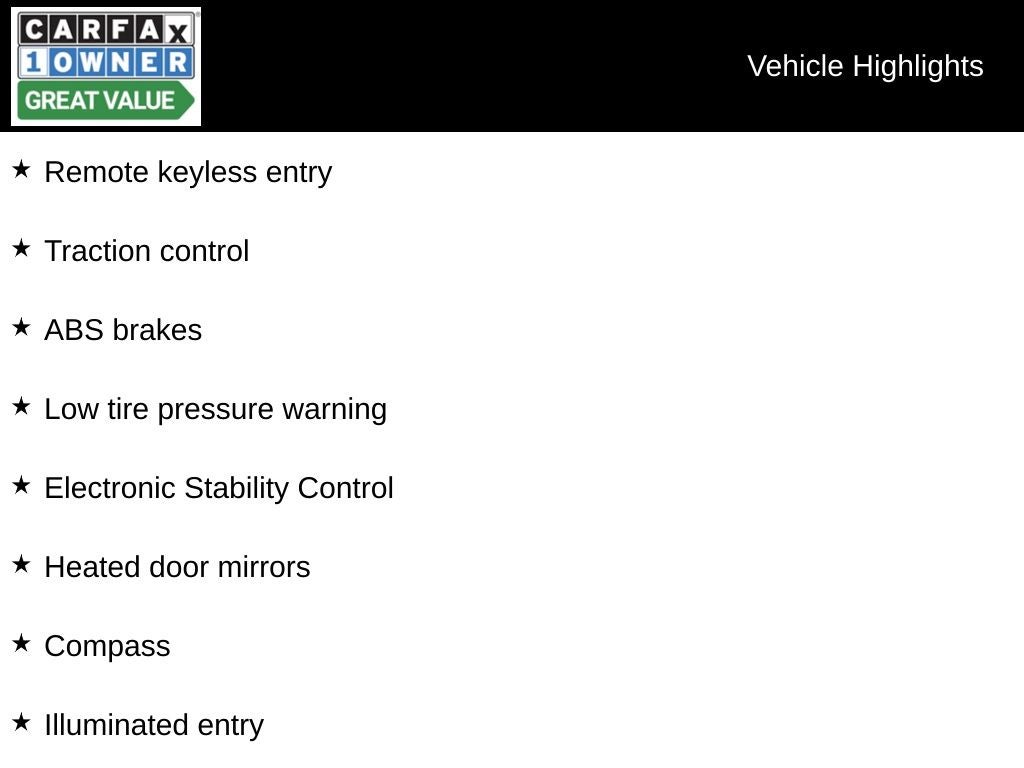 - Remote Keyless Entry w/Integrated Key Transmitter, Illuminated Entry and Panic Button