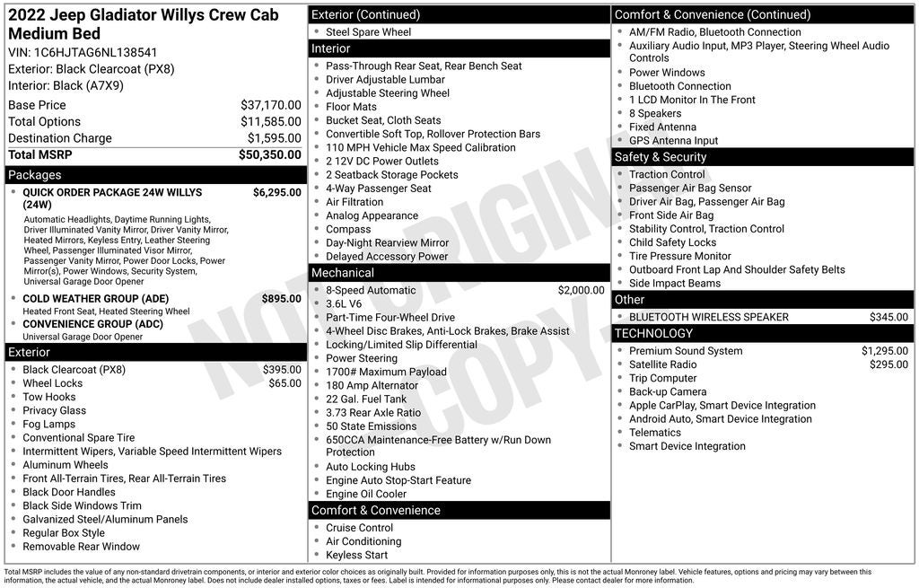 - Vehicle Name: Jeep Gladiator