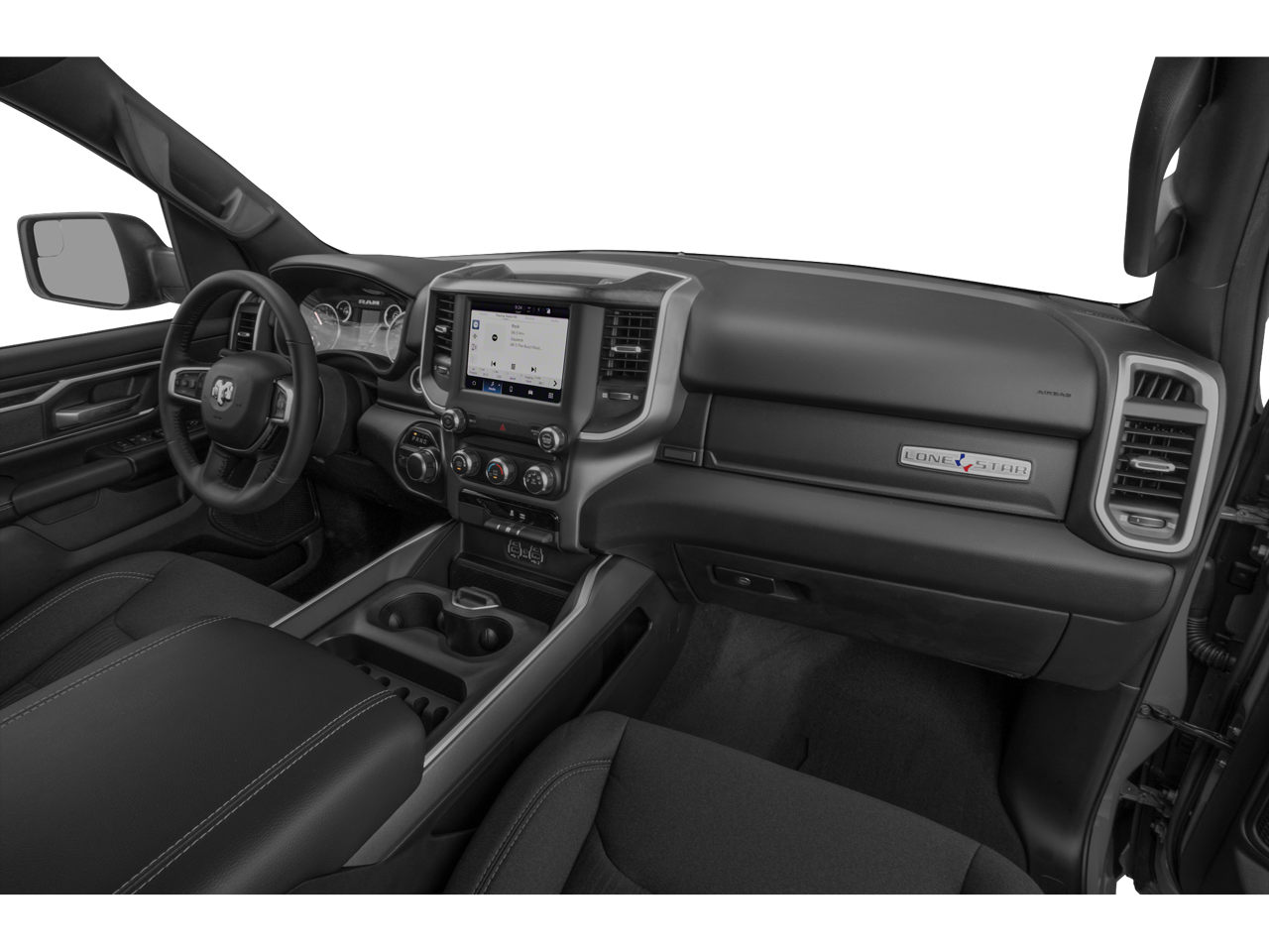Granite Crystal Metallic Clearcoat 2022 Ram 1500 Big Horn/Lone Star 4WD 8-Speed Automatic HEMI 5.7L V8 Multi Displacement VVT 115V Auxiliary Power Outlet, 115V Auxiliary Rear Power Outlet, 2nd Row In Floor Storage Bins, 3 Rear Seat Head Restraints, 3.21 Rear Axle Ratio, 4 Way Front Headrests, 4-Wheel Disc Brakes, 400W Inverter, 48V Belt Starter Generator, 4G LTE Wi-Fi Hot Spot, 6 Speakers, 8.4 Touchscreen Display, ABS brakes, Air Conditioning, Air Conditioning ATC w/Dual Zone Control, All R1 High Radios, All Radio Equipped Vehicles, Alloy wheels, AM/FM radio, Anti-Spin Differential Rear Axle, Apple CarPlay, Auto-Dimming Exterior Driver Mirror, Auto-Dimming Rear-View Mirror, Big Horn Level 2 Equipment Group, Black Exterior Mirrors, Black Exterior Truck Badging, Black Headlamp Bezels, Black Interior Accents, Black Premium Power Mirrors, Bluetooth® Handsfree Phone & Audio, Body Color Front Bumper, Body Color Rear Bumper w/Step Pads, Brake assist, Bucket Seats, Bumpers: chrome, Class IV Receiver Hitch, Cloth Bench Seat, Cluster 7.0 TFT Color Display, Compass, Connected Travel & Traffic Services, Connectivity - US/Canada, Convex Wide-Angle Mirror Insert, Delay-off headlights, Delete LED Lamp - Floor Console Bin, Deluxe Cloth Bucket Seats, Disassociated Touchscreen Display, Driver door bin, Dual Exhaust w/Black Tips, Dual front impact airbags, Dual front side impact airbags, Electronic Stability Control, Emergency communication system: SiriusXM Guardian, Exterior Mirrors Courtesy Lamps, Exterior Mirrors w/Heating Element, Exterior Mirrors w/Supplemental Signals, For Details, Visit DriveUconnect.com, Front anti-roll bar, Front Center Armrest w/Storage, Front fog lights, Front License Plate Bracket, Front reading lights, Front Seat Back Map Pockets, Front wheel independent suspension, Full Length Floor Console, Fully automatic headlights, Global Telematics Box Module (TBM), Glove Box Lamp, Google Android Auto, GPS Antenna Input, GPS Navigation, HD Radio, Heated door mirrors, Heated Front Seats, Heated Steering Wheel, Heavy-Duty Engine Cooling, Illuminated entry, Integrated Center Stack Radio, Integrated Voice Command w/Bluetooth®, Leather steering wheel, Low tire pressure warning, Manual Adjust 4-Way Front Passenger Seat, Manufacturer's Statement of Origin, Media Hub w/2 Charge Only USBs, MOPAR Front & Rear Rubber Floor Mats, Night Edition, Night Edition (DISC), Occupant sensing airbag, Outside temperature display, Overhead airbag, Overhead console, Panic alarm, ParkSense Front/Rear Park Assist w/Stop, ParkView Rear Back-Up Camera, Passenger door bin, Passenger vanity mirror, Power 2-Way Driver Lumbar Adjust, Power 8-Way Driver Seat, Power Adjustable Pedals, Power door mirrors, Power steering, Power windows, Power-Folding Mirrors, Quick Order Package 27Z Big Horn, Radio data system, Radio: Uconnect 3 w/5 Display, Radio: Uconnect 5 Nav w/8.4 Display, Radio: Uconnect 5 W w/8.4 Display, Rear 60/40 Folding Seat, Rear anti-roll bar, Rear Center Armrest, Rear Dome w/On/Off Switch Lamp, Rear Power Sliding Window, Rear seat center armrest, Rear step bumper, Rear Wheelhouse Liners, Rear Window Defroster, Remote keyless entry, Remote Start System, Security Alarm, SiriusXM Radio Service, SiriusXM Satellite Radio, SiriusXM w/360L, Speed control, Split folding rear seat, Steering wheel mounted audio controls, Sun Visors w/Illuminated Vanity Mirrors, Tachometer, Telescoping steering wheel, Tilt steering wheel, Traction control, Trailer Brake Control, Trailer Light Check, Trailer Tire Pressure Monitoring System, Trailer Tow Group, Trip computer, Universal Garage Door Opener, USB Host Flip, Variably intermittent wipers, Voltmeter, Wheels: 18 x 8 Cast-Aluminum Painted, Wheels: 20 x 9.0 Premium Paint/Polished.