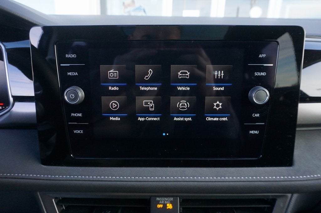 - Radio: MIB3 Composition Media AM/FM/HD -inc: 8" touchscreen multifunction center display, WMA/MP3/FLAC player w/USB-C, voice control, capability for in-vehicle 4G LTE enabled Wi-Fi (cellular data plan required; includes limited trial), capability for VW Car-Net services (capabilities for certain services vary; requires enrollment or subscription), 6-speaker sound system, Bluetooth® connectivity (for compatible devices), SiriusXM w/360L (w/3-month free trial subscription; 360L services require acceptance of Car-Net terms), App-Connect smartphone integration (w/Apple CarPlay, Android Auto and MirrorLink) via USB, wireless App-Connect smartphone integration (for compatible devices) w/multi-phone pairing capability, USB-C enhanced charging up to 45W (for compatible devices) and Qi wireless inductive charger (for compatible mobile phones and accessories) All VW Car-Net services subject to terms & limitations. Some services require a paid subscription. See dealer or vw.com/carnet for details.